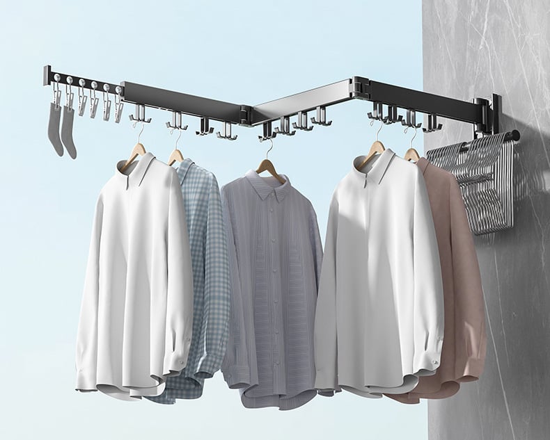 Chất liệu bền bỉ: Làm từ thép sơn tĩnh điện hoặc inox không gỉ, chịu lực tốt, treo được từ 5–10 móc quần áo tùy loại.