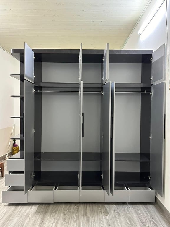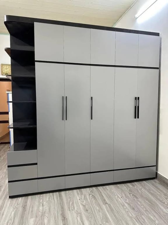 Tủ quần áo hiện đại thiết kế tối giản với kiểu dáng đơn giản nhưng sang trọng. Với các đường nét và góc cạnh tinh tế, cân đối, tủ quần áo này có thể phù hợp với nhiều không gian nội thất khác nhau. Tủ còn được trang bị các khoang lưu trữ rộng rãi và tiện dụng để giúp bạn sắp xếp quần áo, giày dépTủ MDF cao cấp phù hợp với thời tiết và khi hậu của Việt Nam.