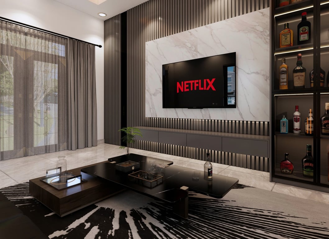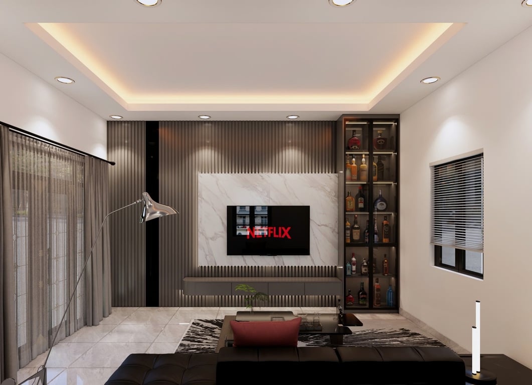 Vách Phòng Khách PVC kết Hợp Lam sóng